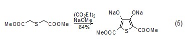 合成噻吩類(lèi)化合物 在堿的條件下,乙二酸二乙酯與β-硫醚二酯類(lèi)化合物可合成噻吩衍生物 (式5)[10],采用類(lèi)似方法也可合成硒代噻吩衍生物[11]。
